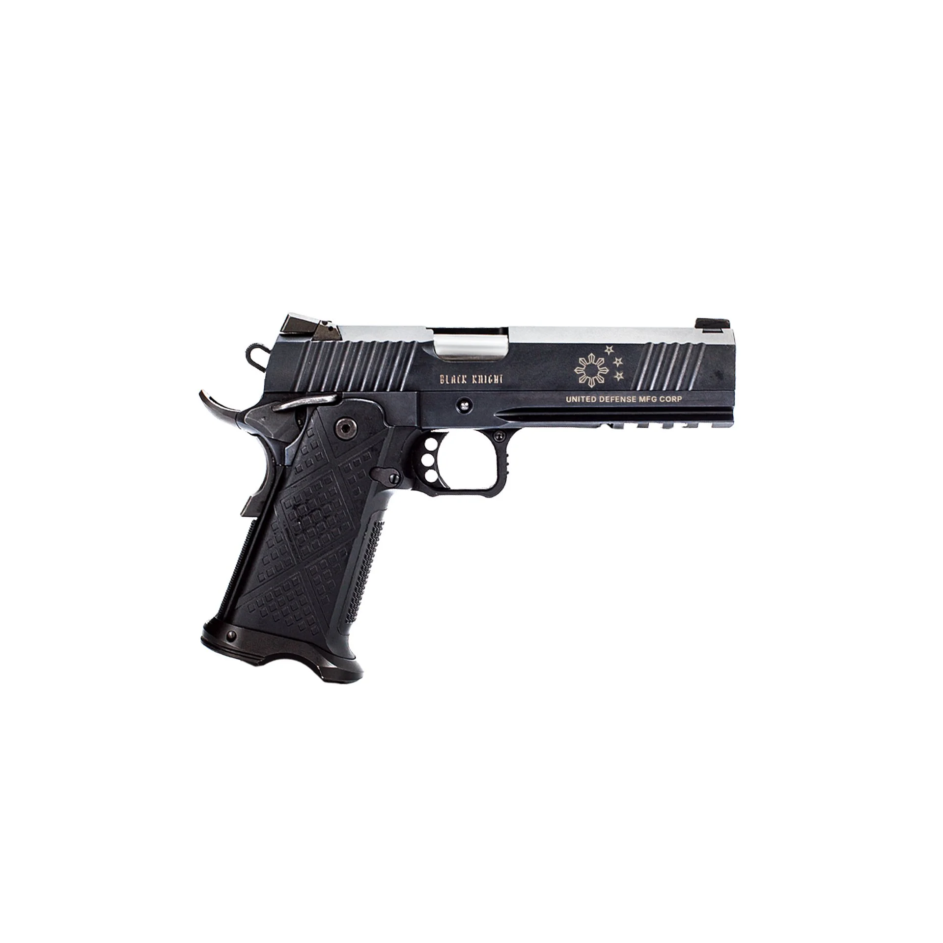 The 2011 BLACK KNIGHT pistol has a high-capacity (double stack) magazine that comes in calibers 9mm and .45, patterned after the 1911 and 1924 (A1 models). It is a semi-automatic pistol with the main upper frame, slide, and barrel made of SS-416 stainless steel machined from bar stock and the grip made of composite polymer. The action fires one round each time the single action trigger is squeezed and the hammer is cocked by the action of the slide.