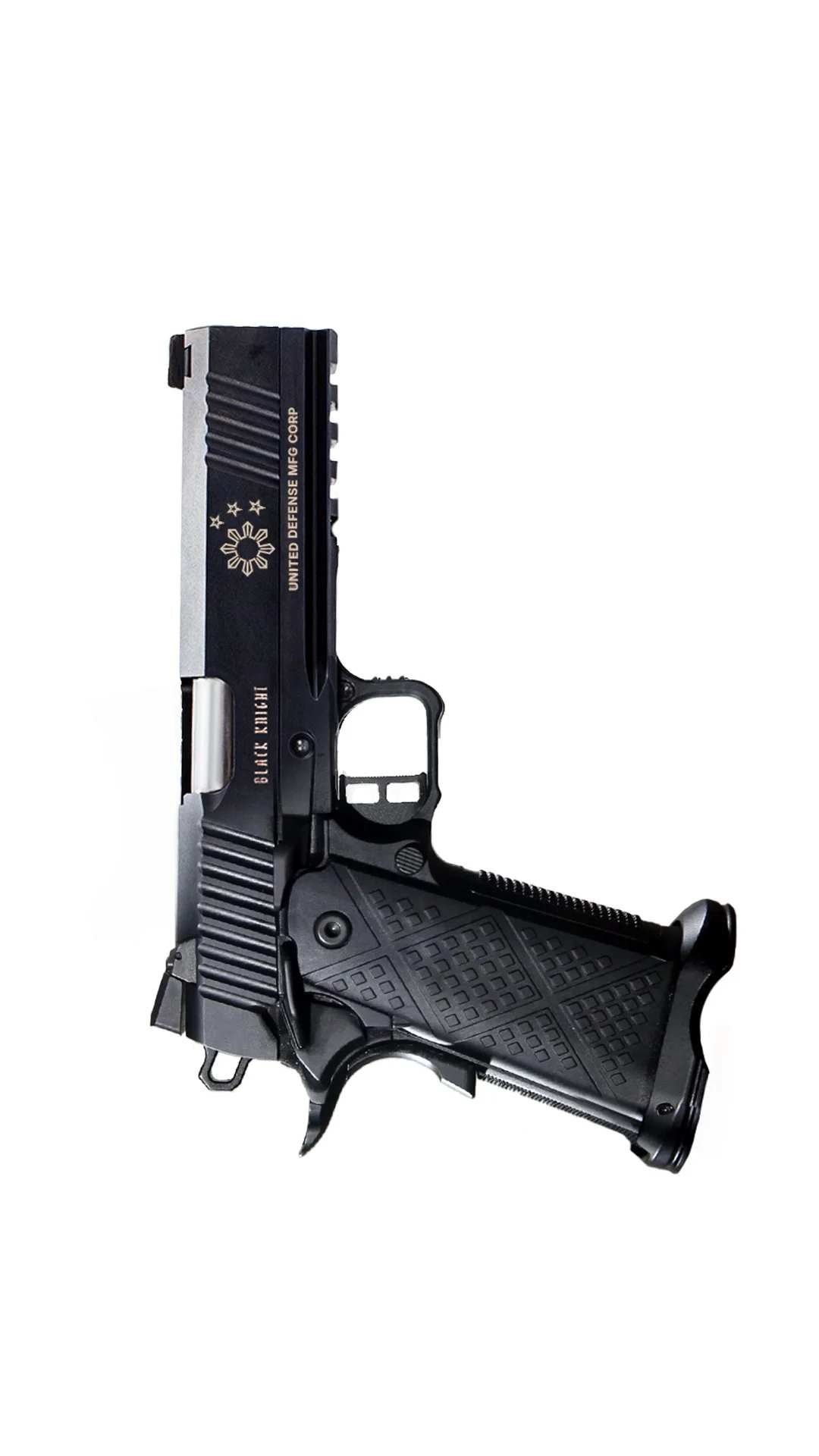 The 2011 BLACK KNIGHT pistol has a high-capacity (double stack) magazine that comes in calibers 9mm and .45, patterned after the 1911 and 1924 (A1 models). It is a semi-automatic pistol with the main upper frame, slide, and barrel made of SS-416 stainless steel machined from bar stock and the grip made of composite polymer. The action fires one round each time the single action trigger is squeezed and the hammer is cocked by the action of the slide.