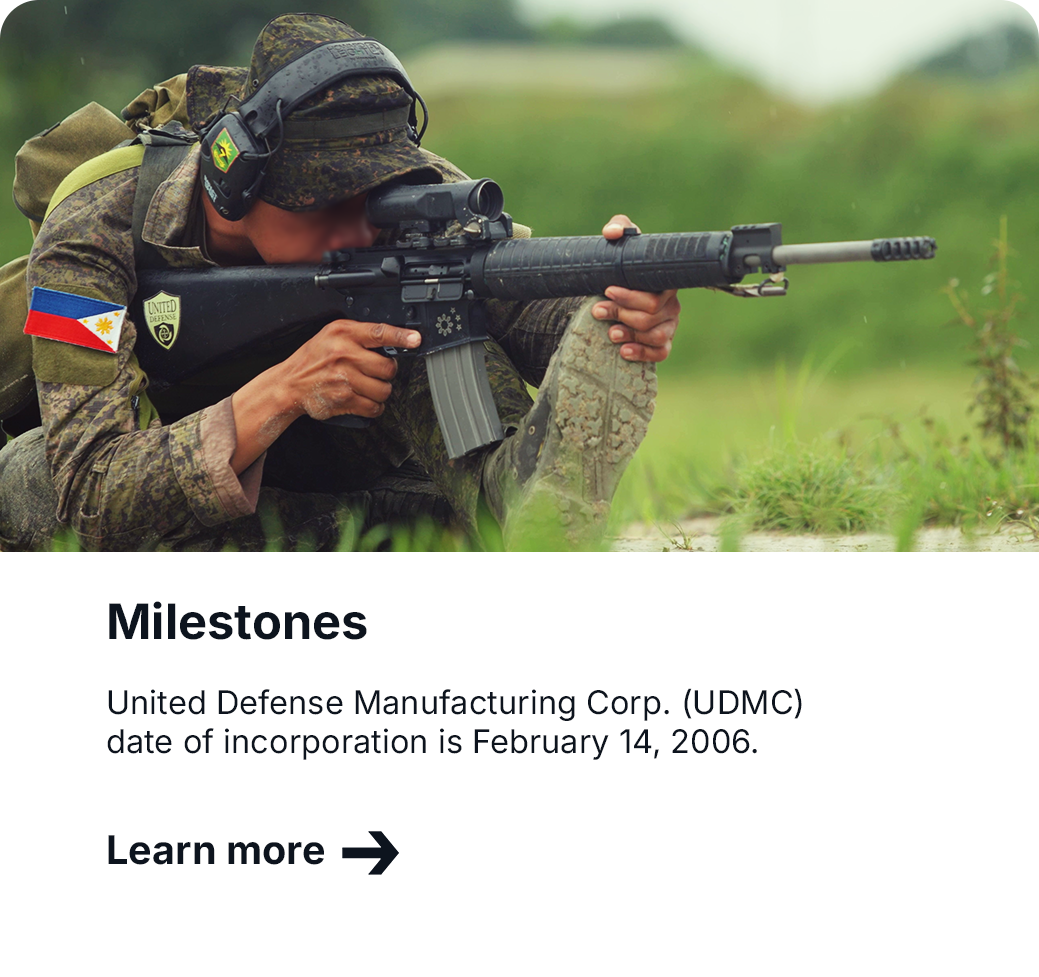 A 100% Filipino Company, United Defense Manufacturing Corp. (UDMC) is engaged in two strategic business units. Both SBU’s are engaged in the sales and distribution of defense equipment to the military and law enforcement agencies.